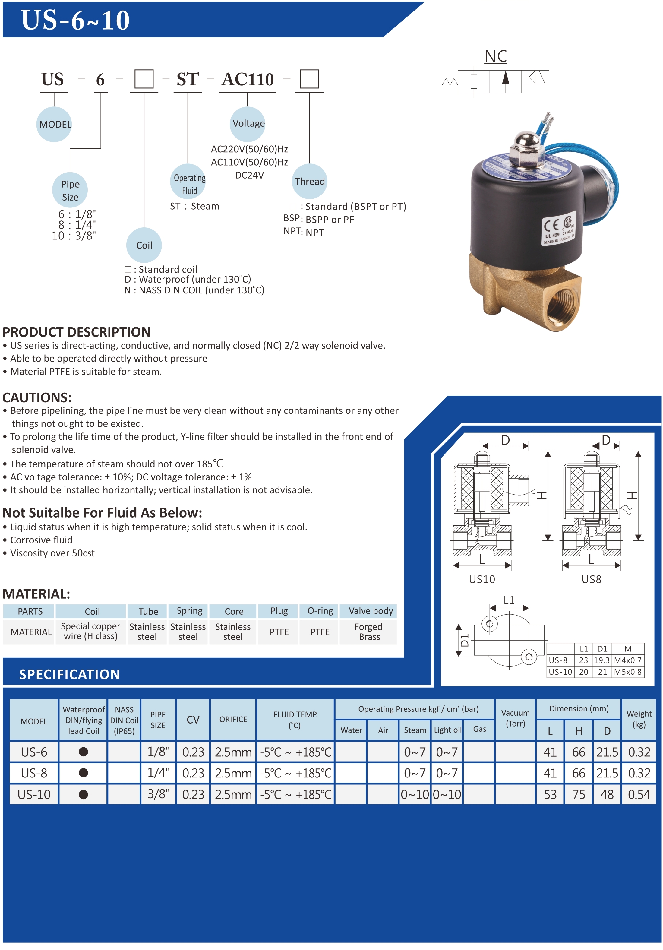 UNI-D Solenoid Valve รุ่น US ( Direct Acting )